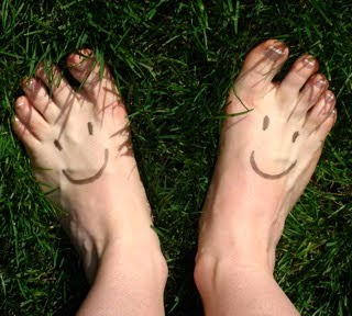 I start out, as always, at a walk and savor my heightened awareness of the ground beneath my feet. A little more gravelly than I thought it would be, I observe. Amazing how many small pebbles and stones I can feel! Since I plan on running less than two miles and I'm short on time, I decide that walking probably isn't very important this morning, so I soon switch over to a slow jog. Again, I find myself on the balls of my feet - no treadmill fluke there! I pay close attention to my posture - legs relaxed, feet under me, slight forward lean. "This is going well" My inner monologue encourages brightly. "This is pretty cool!" I agree. Then, unexpectedly - "Ouch!" I nearly exclaim out loud. Then "OUCH!" again. These "pebbles" are really getting to me! I never noticed them before - but now they seem to be everywhere! What's worse - I can't SEE them because it's so dark out! This might have been less of an issue if it weren't for that little homing-device of sesamoid bone in the ball of my foot which seemed hell-bent on discovering every possible hazard to its barely-recovered self. I made a mental note: "Self - next time, try daylight and some place less - Ouch! - rocky."
